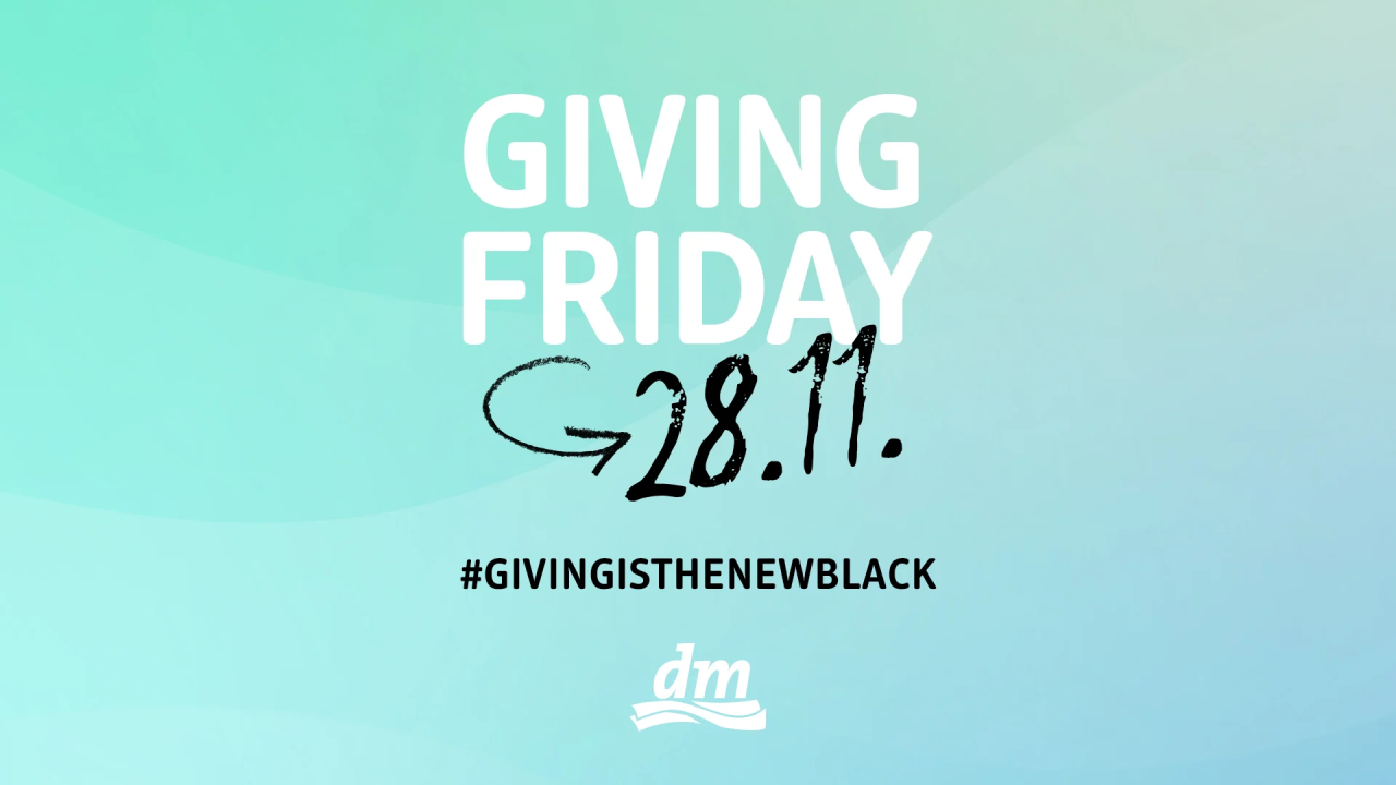 U petak, 28. studenog, dm će ponovno obilježiti Giving Friday, koji na Crni petak, umjesto popusta, u središte pažnje stavlja solidarnost i zajedništvo. Povodom ovogodišnje inicijative dm će pet posto ukupnog dnevnog prometa ostvarenog u 180 dm trgovina i u dm online shopu donirati Centrima u Karlovcu i Puli, koji rade s djecom i mladima suočenima s životnim poteškoćama poput obiteljskog ili vršnjačkog nasilja, depresije i anksioznosti.
