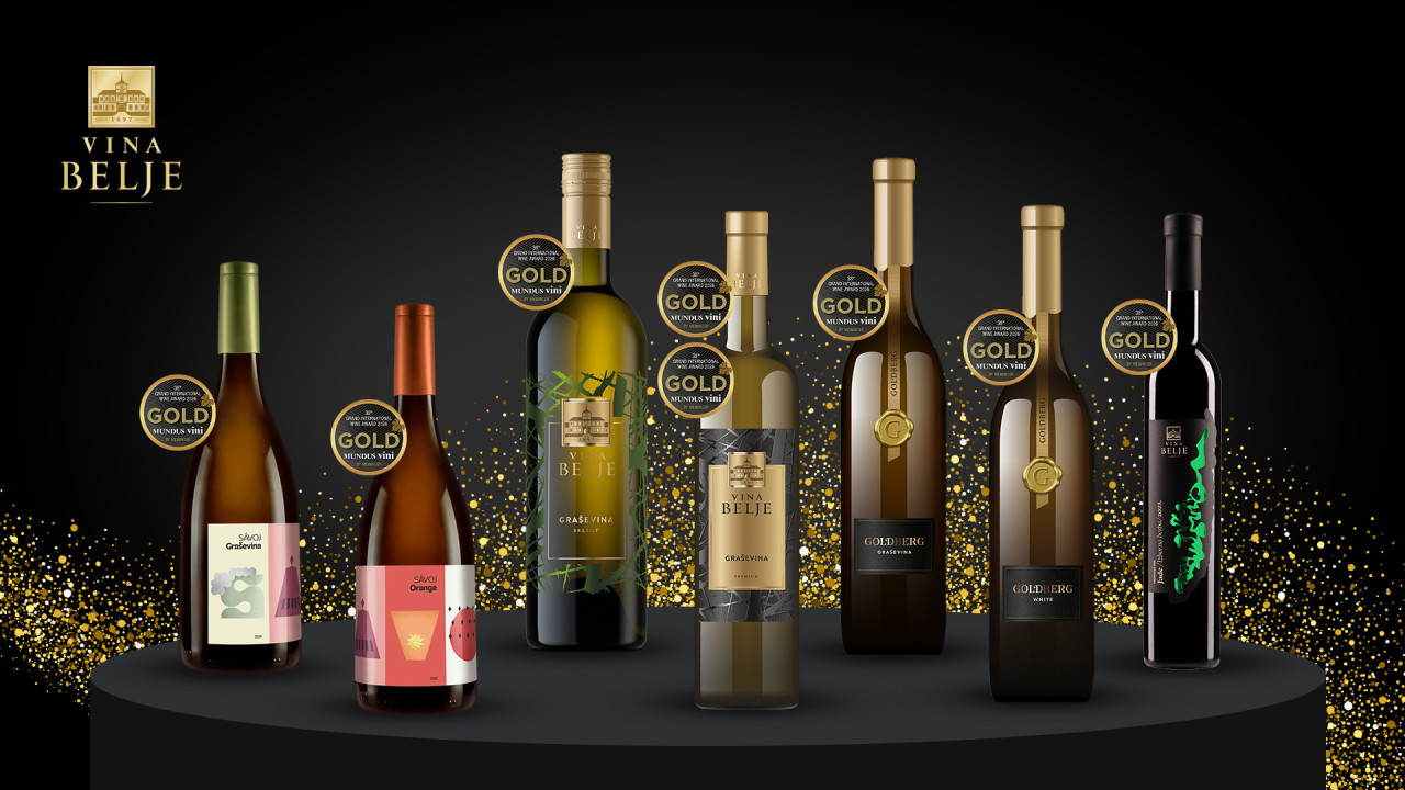 U velikoj konkurenciji, koju na „Mundus Vini – Spring Tasting“ čini više od 5.000 uzoraka vina iz svih krajeva svijeta, zlatne medalje su osvojili Goldberg White 2024., Goldberg Graševina 2024., select Graševina Vina Belje 2025., vrhunske Graševine Vina Belje berbe 2024. i berbe 2025., Jade izborna berba 2023. te dva vina iz linije Savoj, graševina i orange.