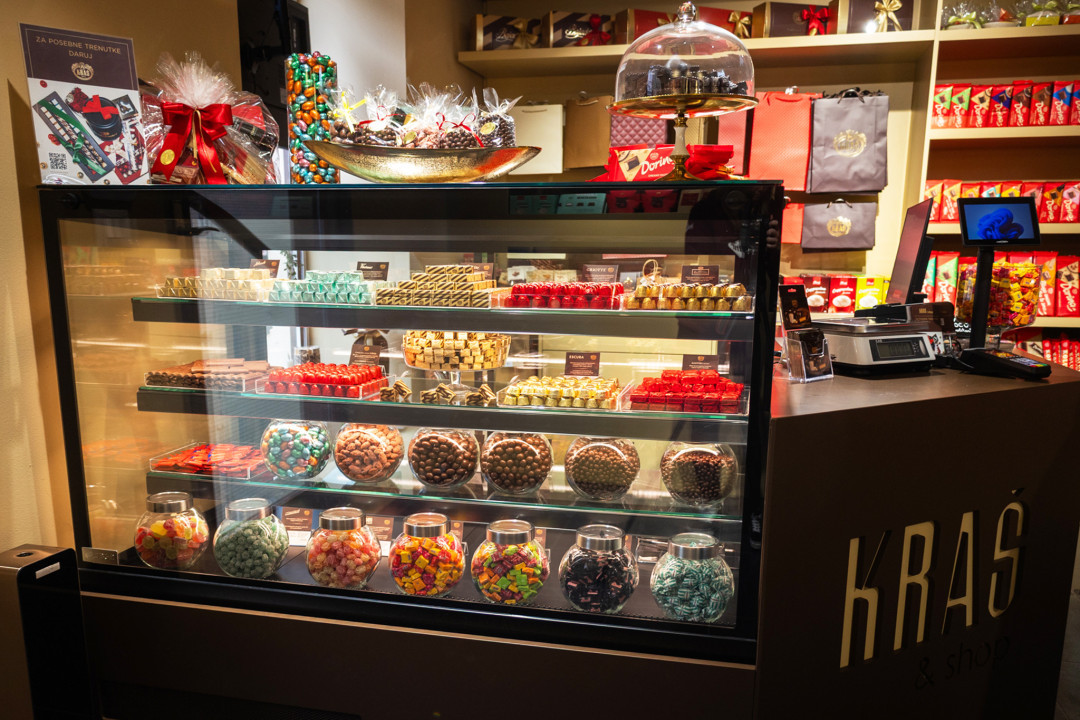 Nove KRAŠ & shop poslovnice donose prepoznatljiv doživljaj kroz pažljivo odabranu ponudu - od premium delicija, Kraševih buketa te ručno rađenih čokolada preko Kraš Selection dražeja do posebnih specijaliteta poput Bajadera crème nougat namaza. U bogatoj rinfuznoj ponudi ističu se omiljeni Kraš klasici poput Ki-Ki i Bronhi bombona, kao i ekskluzivne praline Escura, Kraš 1911 i Novela, dostupne isključivo na Kraš prodajnim mjestima. Ponuda je obogaćena i proizvodima iz drugih kategorija.