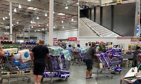Također, uslijed velike potražnje za toaletnim papirom veliki trgovački lanci u svojim prodajnim objektima postavili su natpise kako je kupovina papira strogo ograničena. Najveći trgovac u zemlji, Woolworths, ograničio je kupovinu na četiri paketa po osobi, a ogranak Costco Wholesale na samo jedan veliki paket.