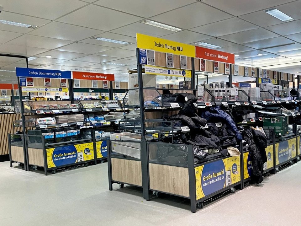Zaradi strukturnih omejitev je razporeditev kategorij manj intuitivna kot v standardnih trgovinah. Lidl to nadomesti z jasnejšimi stropnimi oznakami in zmogljivejšo notranjo navigacijo za učinkovito vodenje strank.
