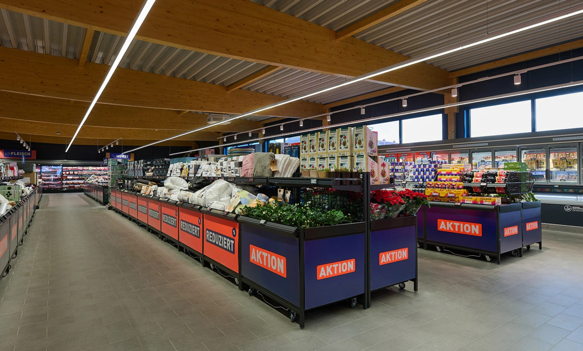 Nove trgovine so enotno strukturirane v skladu z identiteto blagovne znamke in tako sledijo načelu Aldija, da je nakupovanje za stranke še posebej enostavno. Prodajna površina se je razširila s približno 800 na 1300 kvadratnih metrov in ponuja še posebej prijetno nakupovalno vzdušje s širokimi prehodi.