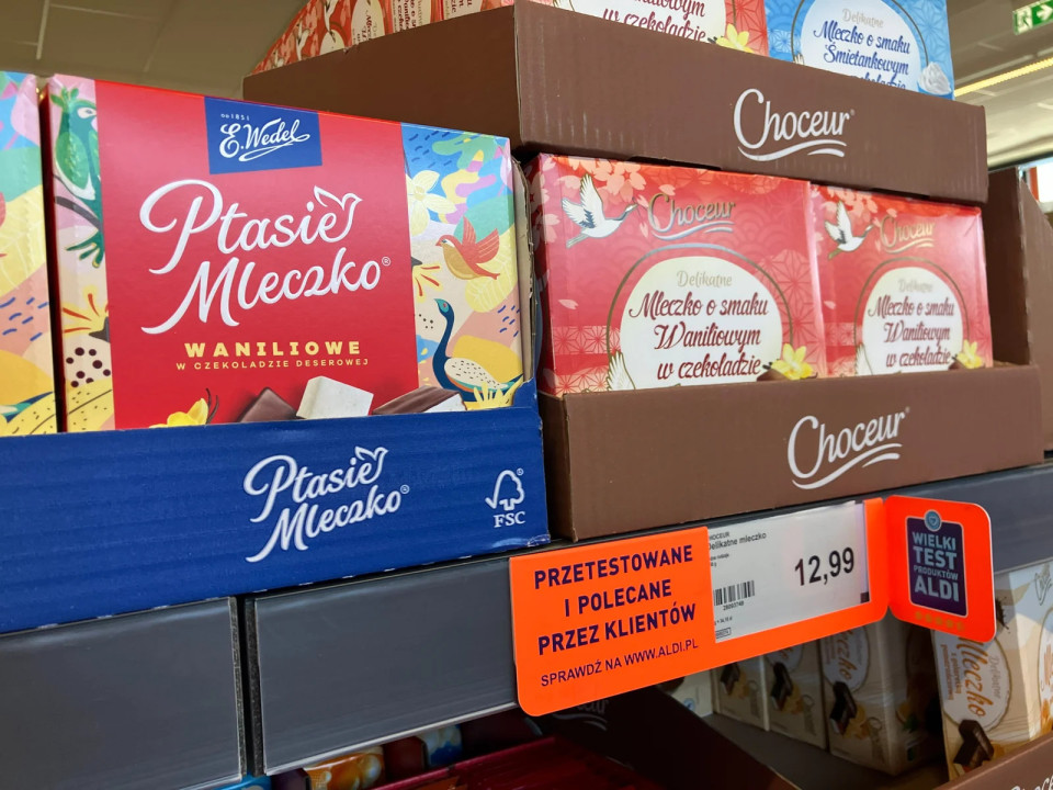 Biedronka poudarja čokolado z okusom matche in jagode, medtem ko konkurenti še naprej izkoriščajo trende okusov pistacije in "dubajskega sloga". Vzporedno s tem in kot del širšega trenda institucionalizacije premium blagovnih znamk je Lidl v svojo stalno ponudbo vključil mlečno peno s pistacijami, prelito s čokolado, pod blagovno znamko Deluxe, namesto da bi jo ohranil kot sezonski ali promocijski izdelek.
