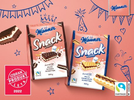 Prestižni pečat Izbran produkt leta 2022 je prejelo tudi podjetje Manner, in sicer za ponudbo izdelkov Manner Snack Minis, ki so izdelani iz 100-odstotno trajnostno pridelanega kakava s pečatom Fairtrade.