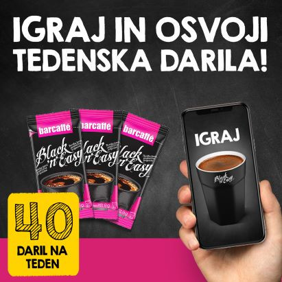 O videoigrici Barcaffè Black'n'Easy več na spletni strani www.barcaffe.si. Barcaffè Black'n'Easy vsak teden podeli 40 nagrad - od tega 16 paketov kave.