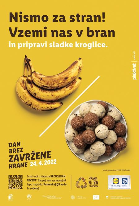 Po zadnjih podatkih Statističnega urada Republike Slovenije je v letu 2020 v Sloveniji nastalo 143.570 ton odpadne hrane, vsak prebivalec Slovenije pa je pred dvema letoma zavrgel povprečno 68 kilogramov hrane, kar je kilogram več kot leto poprej. Pred prihajajočim 2. slovenskim dnevom brez zavržene hrane, ki bo 24. aprila 2022, je Lidl Slovenija razpisal nagradni natečaj "Nisem za stran, vzemi me v bran", v okviru katerega zbirajo okusne reciklirane recepte iz živil, ki v gospodinjstvih največkrat ostajajo ali pa jim bo kmalu potekel rok uporabe.