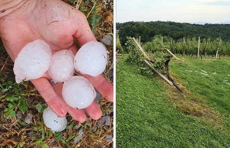 Ker so se že kazali znaki suše, so se na Gorenjskem nekako veselili za torek napovedanih padavin, a je nato toča, ki je tudi v velikosti oreha padala v več pasovih na širšem območju Gorenjske, presenetila vse. "Škoda je precejšnja tudi zato, ker smo bili lani priča izjemni suši in so se vse zaloge krme porabile. K sreči smo imeli letos izredno dober prvi odkos, ampak zdaj nas je pa to udarilo," je dejal Golc.