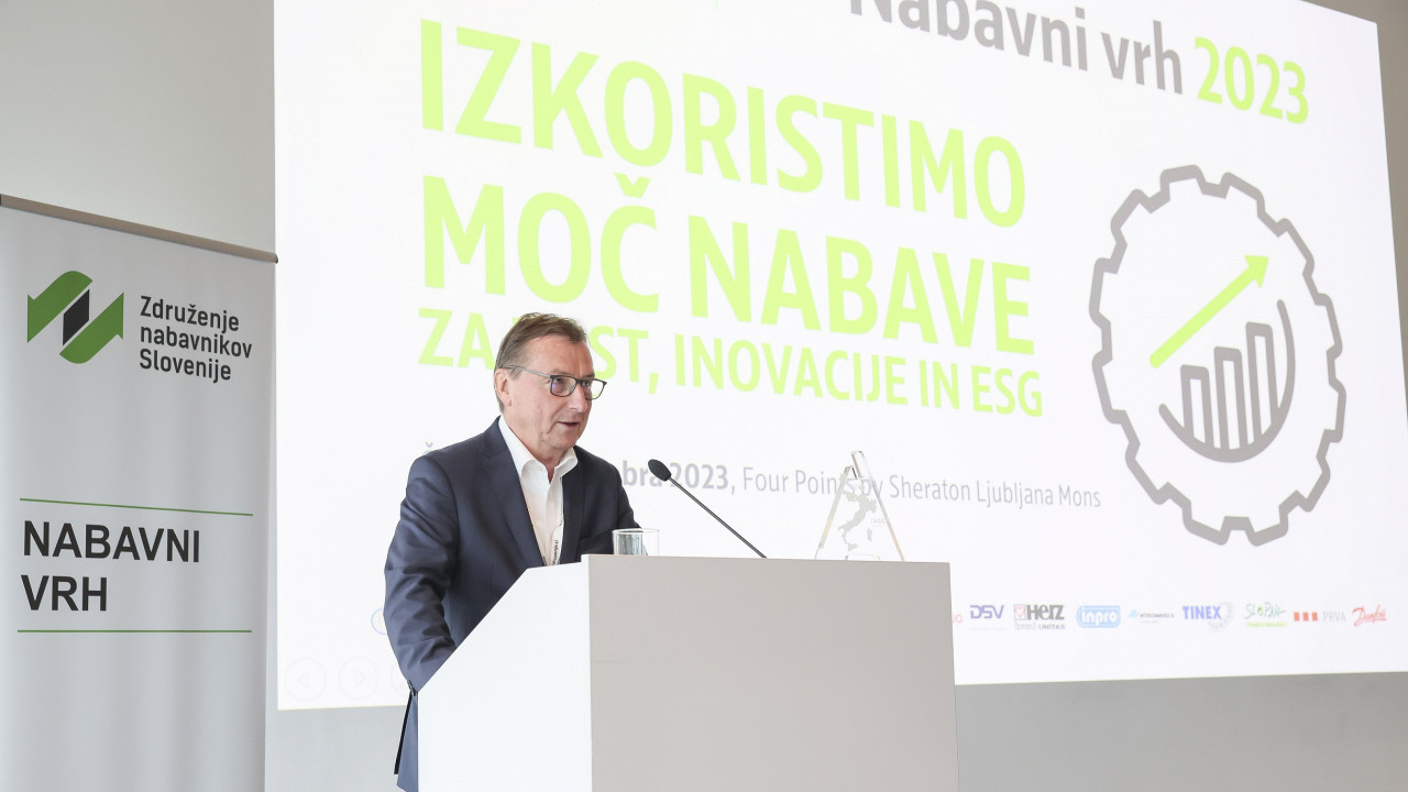 O novih trendih in tveganjih na področju nabave je spregovoril partner v svetovalnem podjetju Kearney Branko Žibret. Novi razvojni izzivi po njegovih pojasnilih na novo opredeljujejo delo nabavnikov.