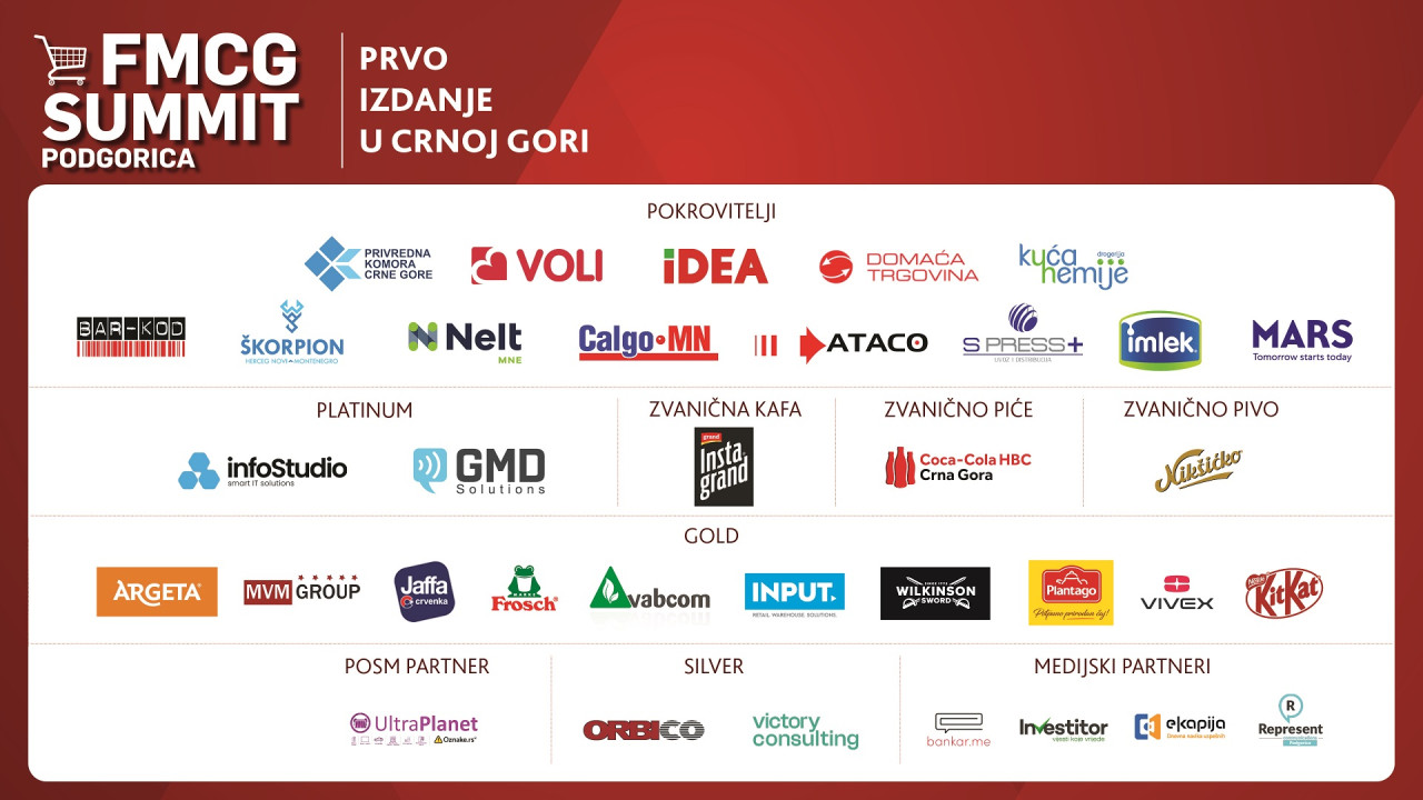 FMCG Summit Podgorica - po prvi put u Crnoj Gori, sektor maloprodaje, proizvodnje i distribucije dobija centralno mesto okupljanja i razmene znanja, iskustava i poslovnih prilika!